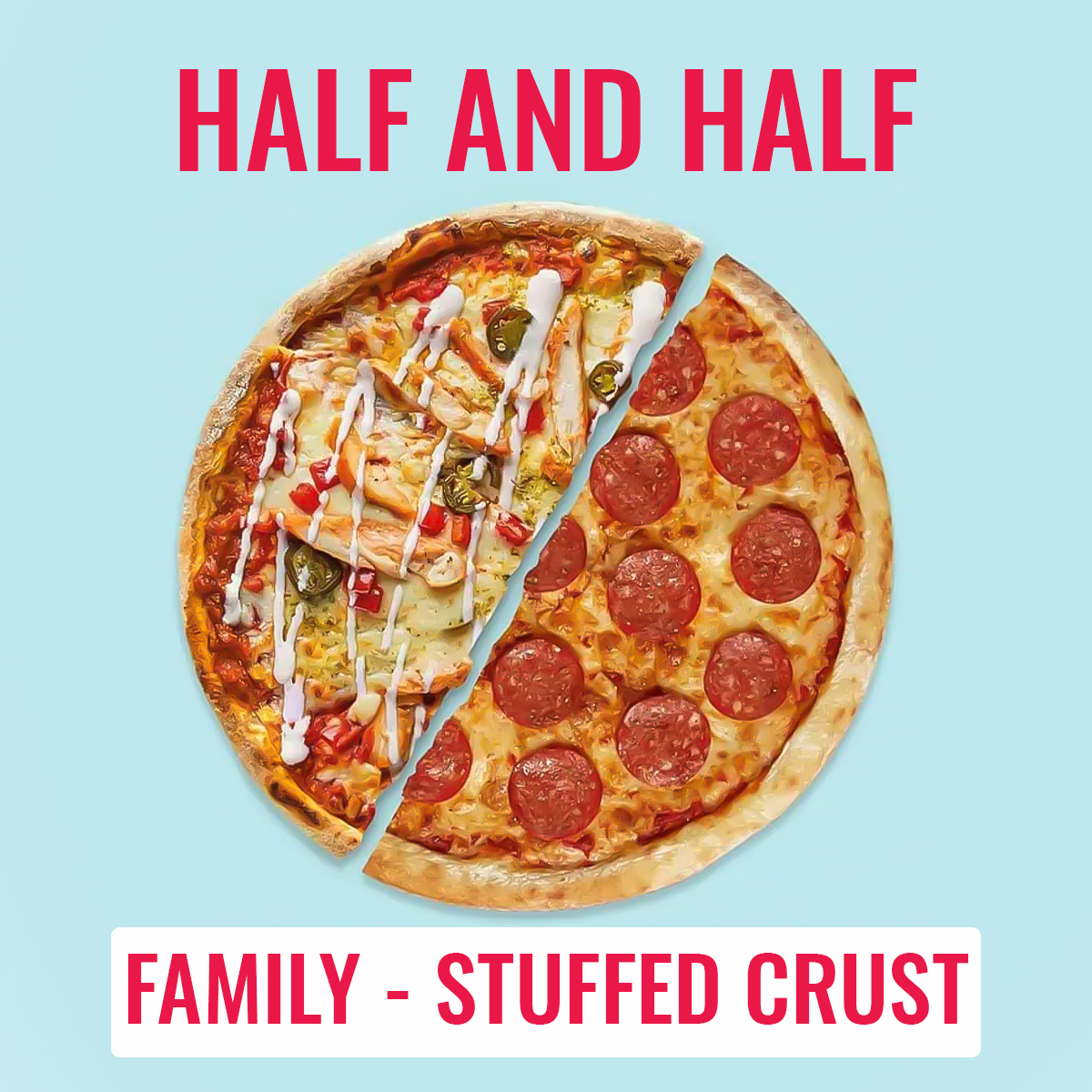 Cheese & Burger Stuffed Crust - Burger Slices - Jalapeños - Onion Rings - Smoked sauce - Mozzarella Cheese - Tomatos - Fresh Tomato Sauce